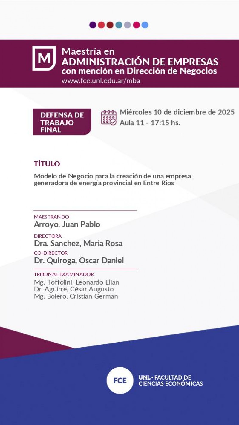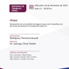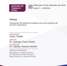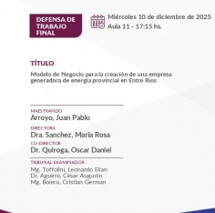 Los maestrandos Yamile Costa, Juan Pablo Arroyo y Florencia Araceli Rodríguez defenderán sus trabajos finales el miércoles 10 de diciembre a partir de las 16 hs.
