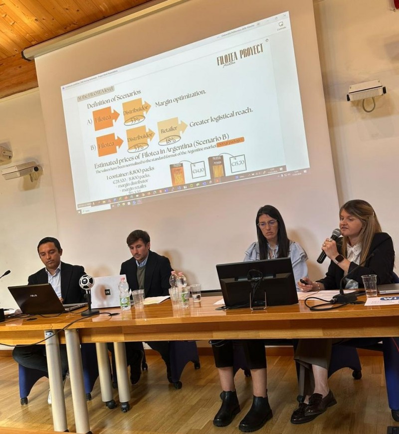 Los estudiantes Soledad Molina, Joaquìn Saux, Claudia Amherdt y Jonatan Rojas elaboraron un proyecto de internacionalización para la firma Filotea.