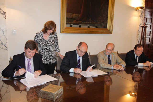 La UNiversidad Nacional del Litoral a través de la Facultad de Ciencias Económicas, y la Administración Provincial de Impuestos (API), dependiente del Ministerio de Economía de la provincia de Santa Fe, suscribieron un convenio para el dictado de una propuesta de educación a distancia que permitirá profesionalizar a funcionarios del organismo. Se trata de la Tecnicatura en Administración y Gestión Tributaria, carrera aprobada por resolución del Consejo Superior de la Universidad Nº 384/14. El rector Albor Cantard y el Administrador Provincial de Impuestos, José Daniel Raffin firmaron el documento en un breve acto que contó con la presencia del ministro de Economía de la provincia, Ángel Sciara; y el decano de la Facultad de Ciencias Económicas (FCE) de la UNL, Carlos Beltrán.