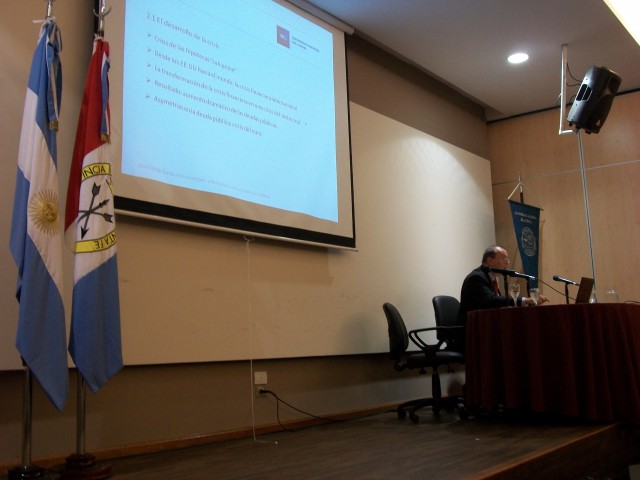 La conferencia abordó temas como la situación económica de la Unión Europea, en particular en el contexto de la crisis griega o “Grexit”. Se describió el desarrollo de la crisis de deudas en la “zona euro” desde 2008, las políticas principales de los gobiernos y del Banco Central Europeo, y los resultados (tanto económicos como políticos) de estas políticas en varios países europeos. Finalmente se analizó el futuro de la integración europea, incluyendo algunos aspectos comparativos con Argentina y el Mercosur.