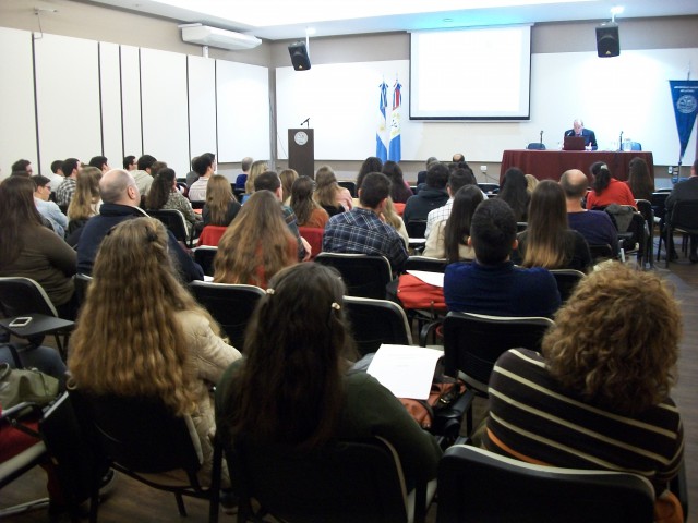 Presentado por el decano de la Facultad, Carlos Beltrán y el director de la Maestría en Administración y Finanzas de la FCE, Martín Dutto, el Dr. Ulrich Schuele, profesor de Economía Política de la Universidad de Mainz (Alemania) brindó la conferencia denominada "Europa en la encrucijada: enfrentándose a retos económicos y políticos".