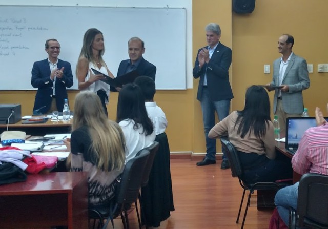 Durante la entrega también estuvieron presentes el Director de la carrera en la FCE y otras autoridades de la Facultad.