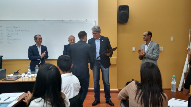 El Decano de la FCE y el Director de la Maestría en Administración y Finanzas en la Universidad de Kaiserslautern, Prof. Dr. Christian Armbruster, entregaron los primeros doble títulos de la carrera a estudiantes argentinos.