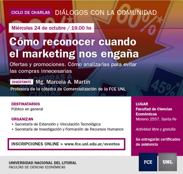 Los invitamos a asistir a la próxima charla del ciclo "Diálogos con la comunidad", denominada "Cómo reconocer cuando el marketing nos engaña".