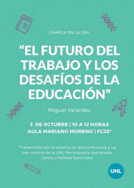 El director de Cambio Tecnológico y Empleo del Ministerio de Producción y Trabajo de la Nación, Miguel Velardez, visitará la Universidad Nacional del Litoral (UNL) el próximo jueves 3 de octubre, donde disertará sobre “El futuro del trabajo y los desafíos de la educación”.