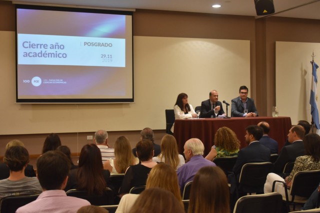El decano de la Facultad junto al Coordinador del Programa de Posgrado de la UNL y la Secretaria de Posgrado de la FCE encabezaron el acto de Finalización de Actividades 2019 de los Posgrados.