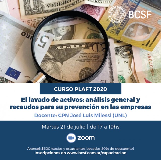 El martes 21 de julio, de 17 a 19 hs., la Bolsa de Comercio de Santa Fe brindará el curso virtual: "El lavado de activos: análisis general y recaudos para su prevención en las empresas", a través de la plataforma zoom.