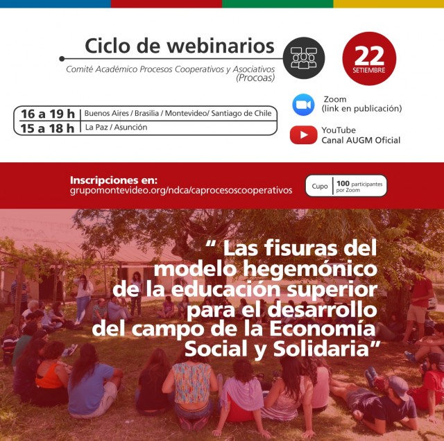 Esta propuesta del Comité Académico Procesos Cooperativos y Asociativos (Procoas) lleva por título «Contexto de la economía social y solidaria en situación de pandemia. Reflexiones, relatos e intercambios desde la perspectiva universitaria» y consta de cuatro encuentros que se llevarán a cabo en setiembre, octubre y noviembre.