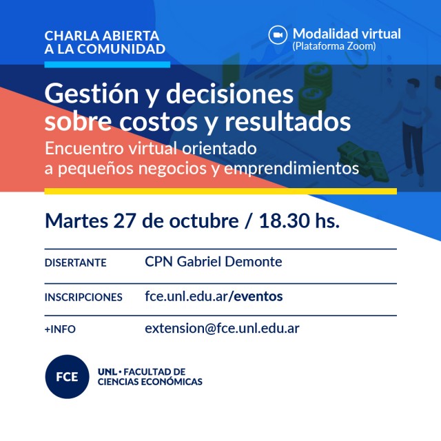 EVENTO REPROGRAMADO: El martes 3 de noviembre a las 18:30 se llevará a cabo la charla abierta a la comunidad: "Gestión y decisiones sobre costos y resultados", originariamente prevista para el 27/10.