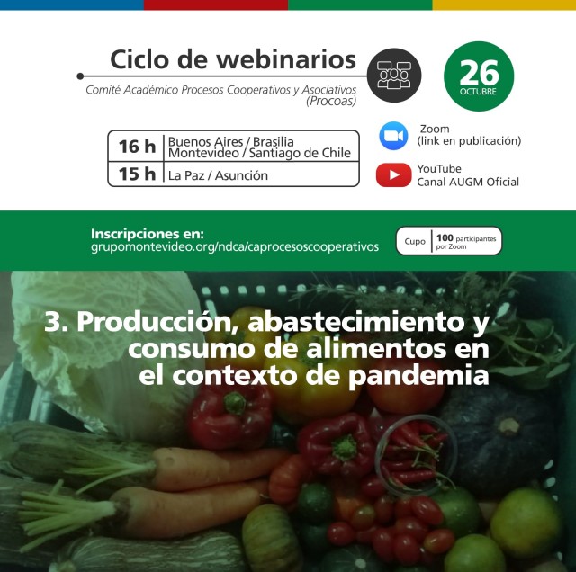 El tercer webinar del Comité Académico Procesos Cooperativos y Asociativos (PROCOAS) se realizará el lunes 26 de octubre a las 16 hs (Argentina).