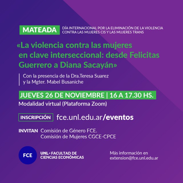Organiza la Facultad de Ciencias Económicas, e invitan la Comisión de Género FCE y la Comisión de Mujeres CGCE-CPCE.