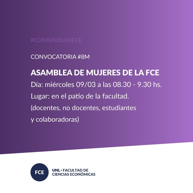 La Facultad de Ciencias Económicas participa de la agenda de actividades que tiene prevista la Universidad Nacional del Litoral (UNL) en relación a las propuestas para celebrar el Día Internacional de la Mujer Trabajadora. Son varias las actividades se encuentran diagramadas en toda la semana, entre ellas la Asamblea de Mujeres de la FCE coordinada por la Facultad y el área central. Tal como se expresó en la comunicación de la UNL, con estas actividades se propone visibilizar y reflexionar acerca de las problemáticas de género, bajo el lema planteado por la ONU para el 2022 “Igualdad de género hoy para un mañana sostenible”.