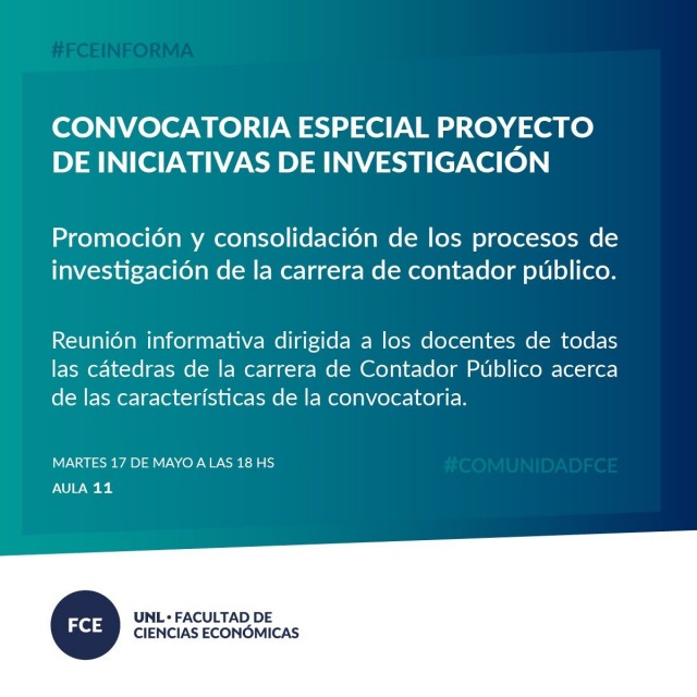 La reunión informativa está dirigida a los docentes de todas las cátedras de Contador Público y en la misma se brindará información sobre las características de la convocatoria.
