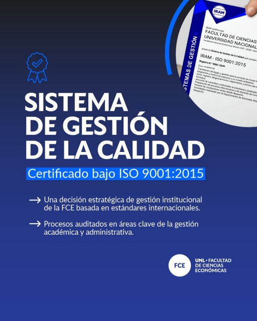La Facultad de Ciencias Económicas de la Universidad Nacional del Litoral presentó el informe institucional de resultados del Sistema de Gestión de la Calidad correspondiente al período 2022-2025, iniciativa alineada al Plan Estratégico Institucional UNL 100+10. El sistema -certificado por IRAM bajo norma ISO 9001:2015-- abarca los procesos de Alumnado y Diplomas, Bedelía, Mesa de Entradas y Despacho, y refleja una estrategia orientada a profesionalizar la gestión administrativa, fortalecer la trazabilidad de circuitos y consolidar la toma de decisiones basada en evidencia.
